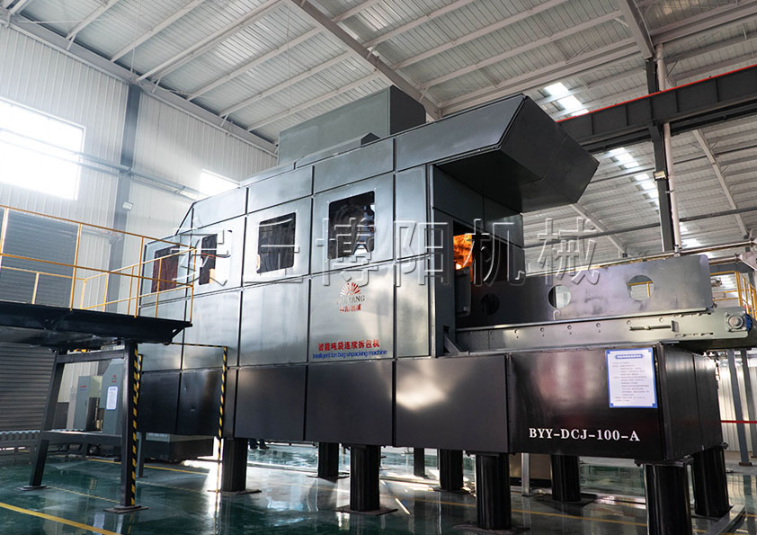 不落地噸袋全自動拆包機(jī)實現(xiàn)拆包輸送成套設(shè)備的吊裝、稱重、固定、整形、拆包、取樣、拍打、脫鉤、回程、輸送、收塵等整個流程的高度自動化、智能化穩(wěn)定運行。