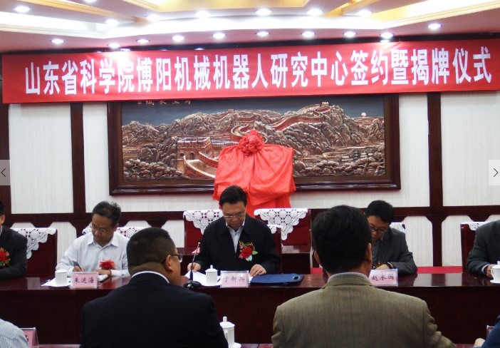 2016年4月28日,安丘博陽機(jī)械制造有限公司與山東科學(xué)院正式簽約成立機(jī)器人研究中心,安丘市于新兵市長出席簽約暨揭牌儀式并講話,